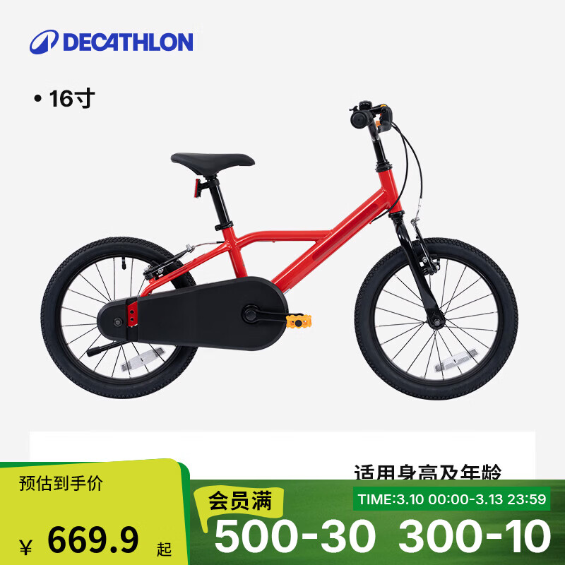 迪卡侬(DECATHLON)儿童自行车单车脚踏车男孩女孩宝宝童车 16寸儿童自行车红色 【钢架】
