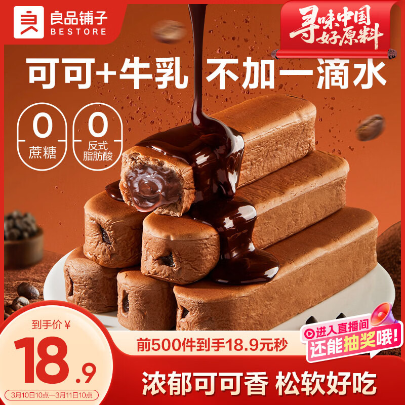 良品铺子可可牛乳面包棒500g早餐代餐0蔗糖牛奶面包点心办公室零食