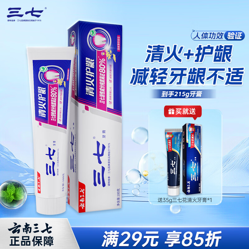 三七清新护龈牙膏云南三七清火去渍去口臭口气清新薄荷成人180g*1支