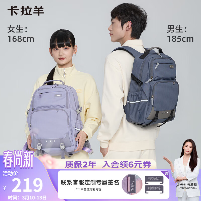 卡拉羊书包初高中生大容量超轻减负护脊背包中学生大学生男女休闲双肩包