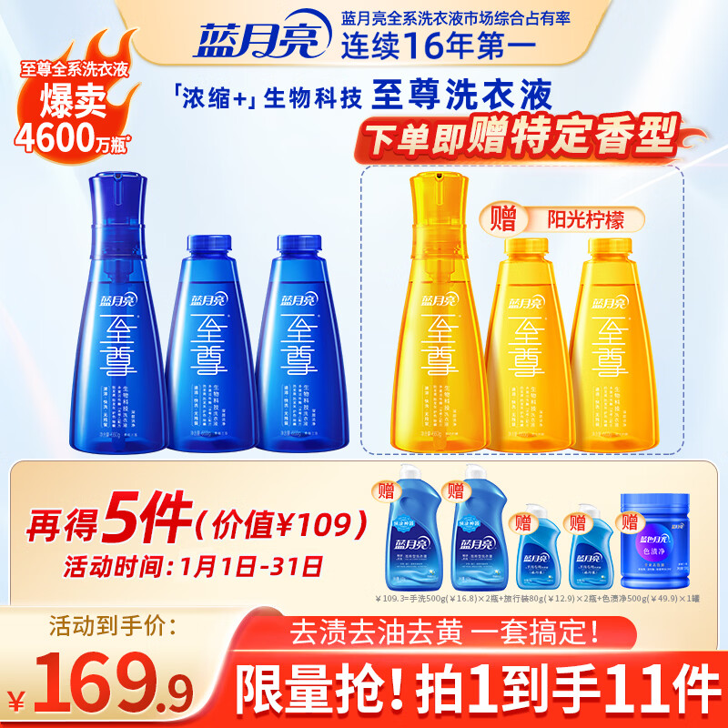 蓝月亮至尊洗衣精华浓缩洗衣液11件套 秒溶快洗 深层洁净护衣护色除螨