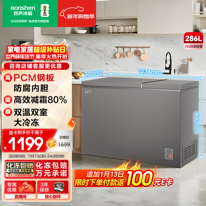 容声(Ronshen)286L双温家商两用冰柜冰箱PCM防腐内胆高效减霜80%大冷冻小冷藏冷柜自营BCD-286E10KNLAD
