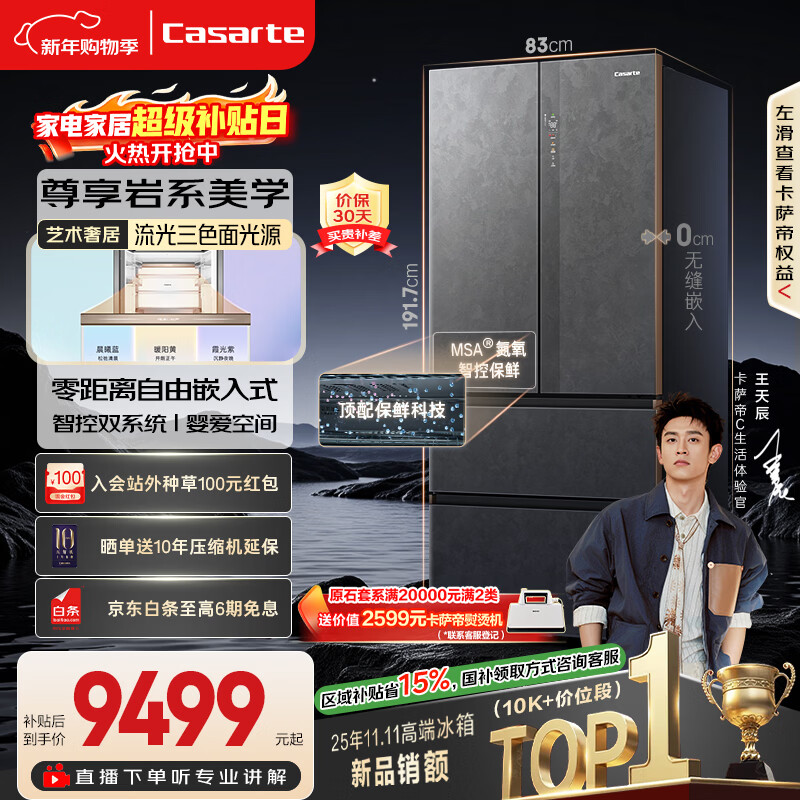 卡萨帝(Casarte)原石560L法式多门冰箱MSA氮氧智控保鲜一级能效双系统主动除菌 550升级款BCD-560WGCFDA4GUU1
