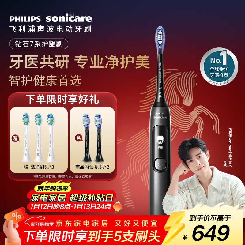 飞利浦(PHILIPS)声波电动牙刷钻石7系护龈刷 年货节礼物 情人节情侣款送男生/女友 变频护龈 HX3792/01钛银灰