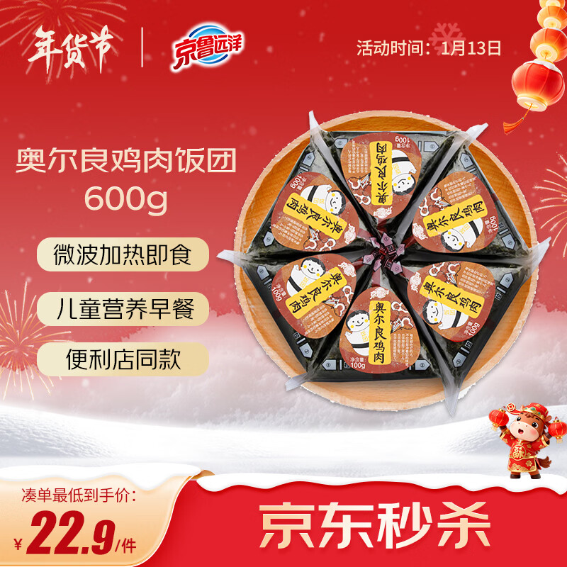 京鲁远洋奥尔良鸡肉三角海苔饭团 600g6枚 儿童早餐 夜宵