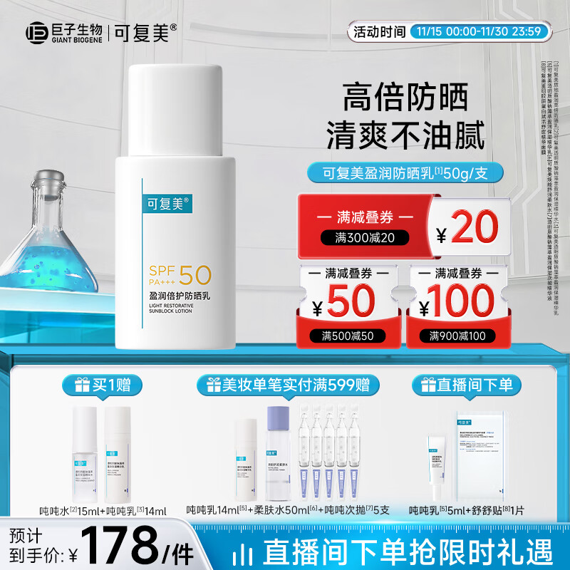 可复美质地盈润高倍防晒乳spf50清爽防晒50g