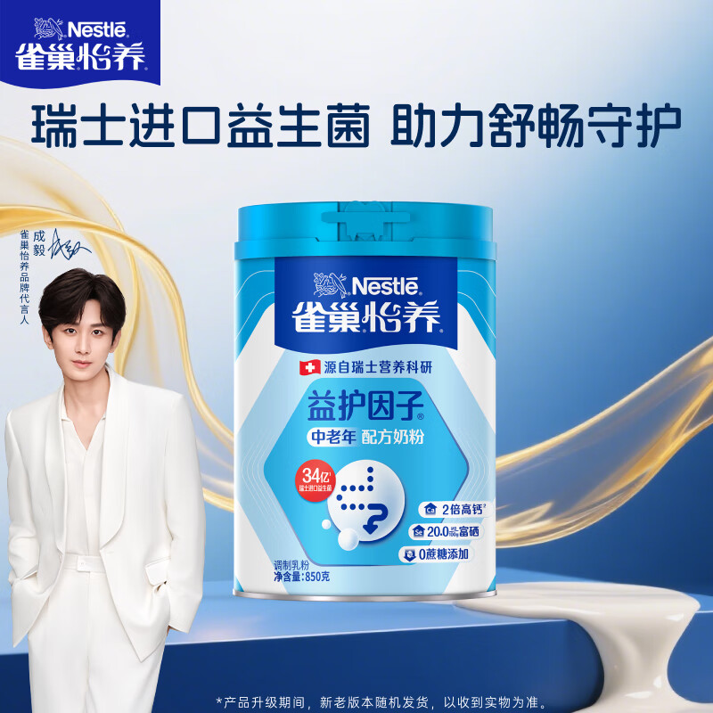 雀巢(Nestle)怡养益护因子中老年奶粉高钙850g富硒成毅推荐成人奶粉送礼送长辈