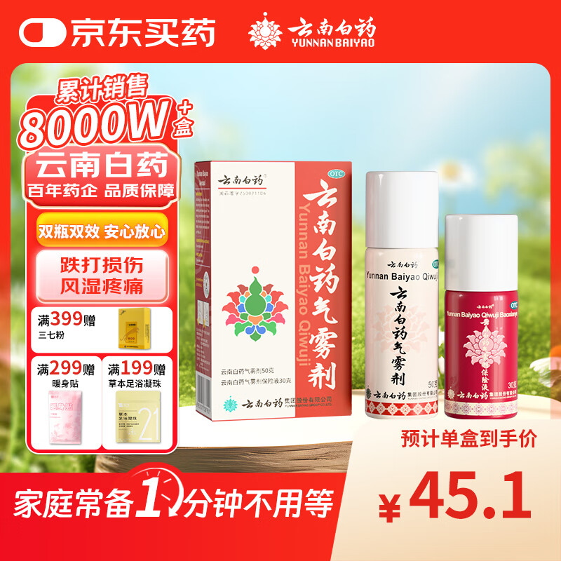 云南白药气雾剂50g+30g喷雾剂跌打损伤消肿止痛活血化瘀扭伤拉伤用于淤血肿痛肌肉酸痛风湿疼痛