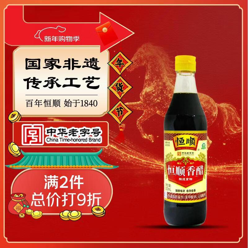 恒顺【品酒会同款】香醋 B香4.5度 500ml 炒菜点蘸不添加防腐剂