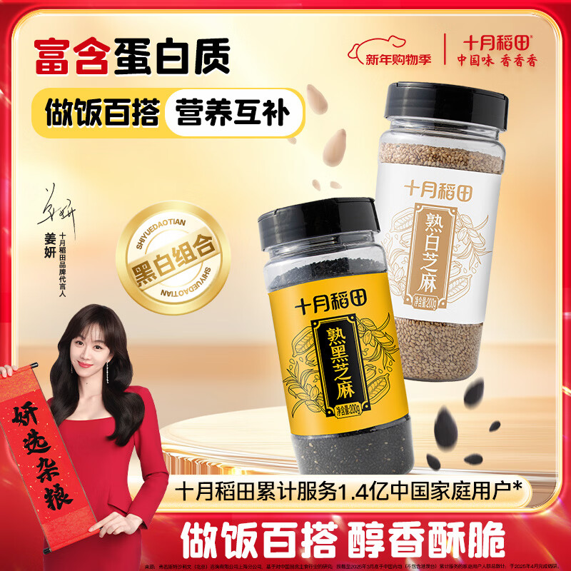 十月稻田 熟黑白芝麻组合装(200g*2) 凉拌调味 即食杂粮 芝麻酱糊原料