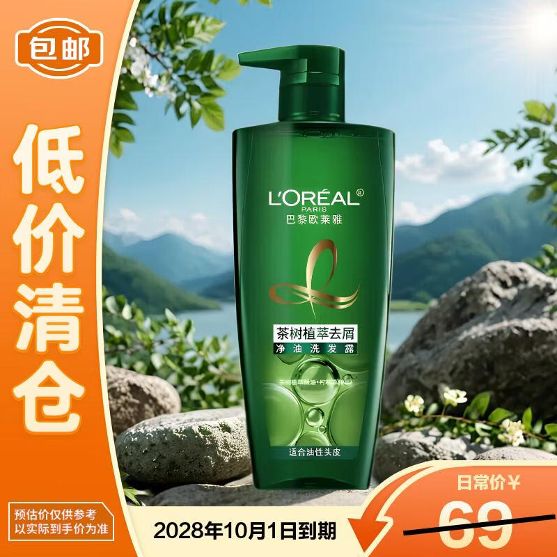 欧莱雅洗发水茶树植萃去屑净油洗发露700ml 无硅油 【临期清仓】