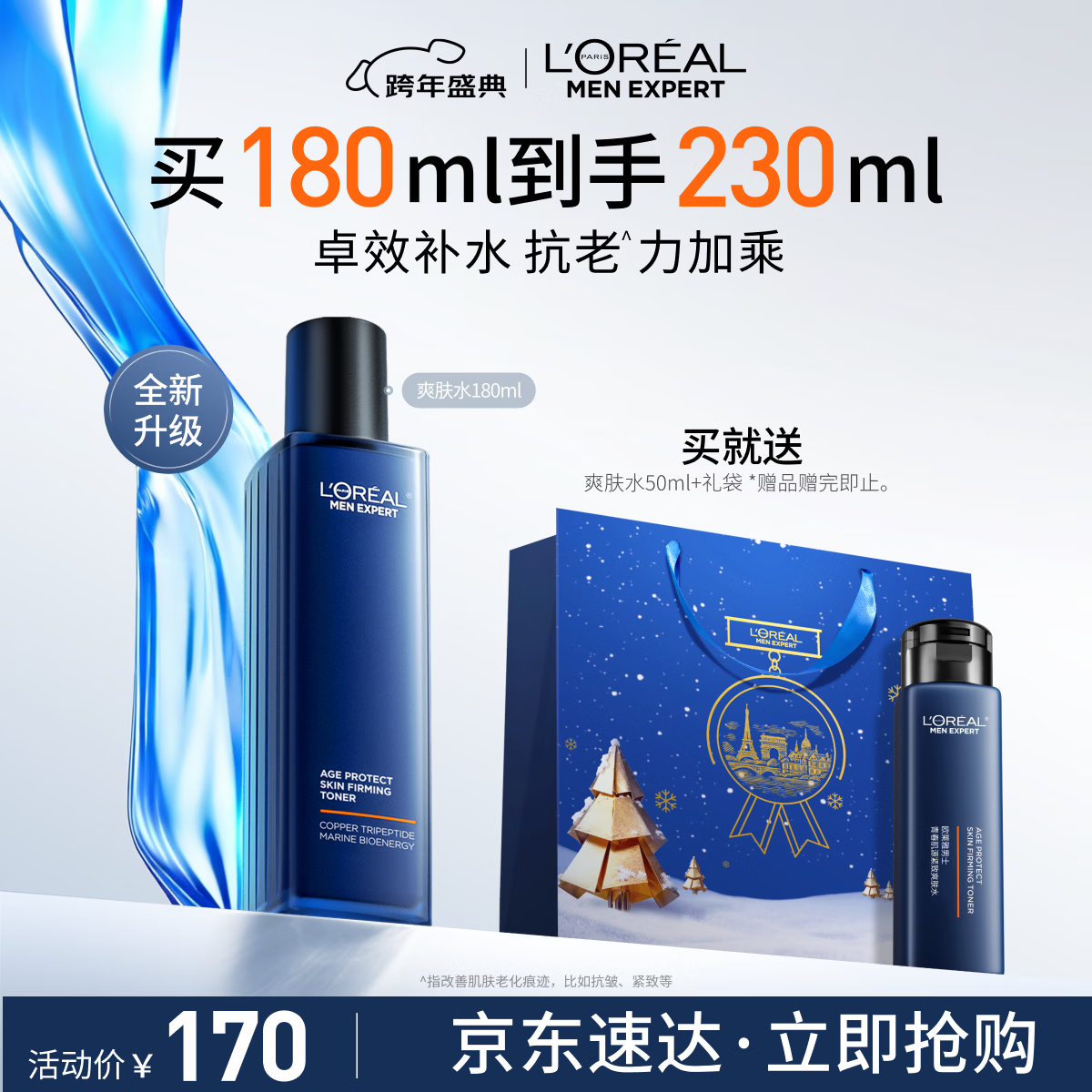 欧莱雅男士青春肌源抗皱紧致爽肤水180ml补水保湿须后护肤品新年送男友