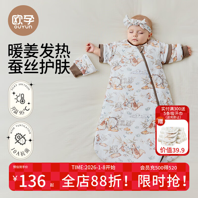 欧孕(OUYUN)婴儿睡袋春秋儿童暖姜恒温防踢被1-3岁宝宝双层一体睡袋 松鼠75