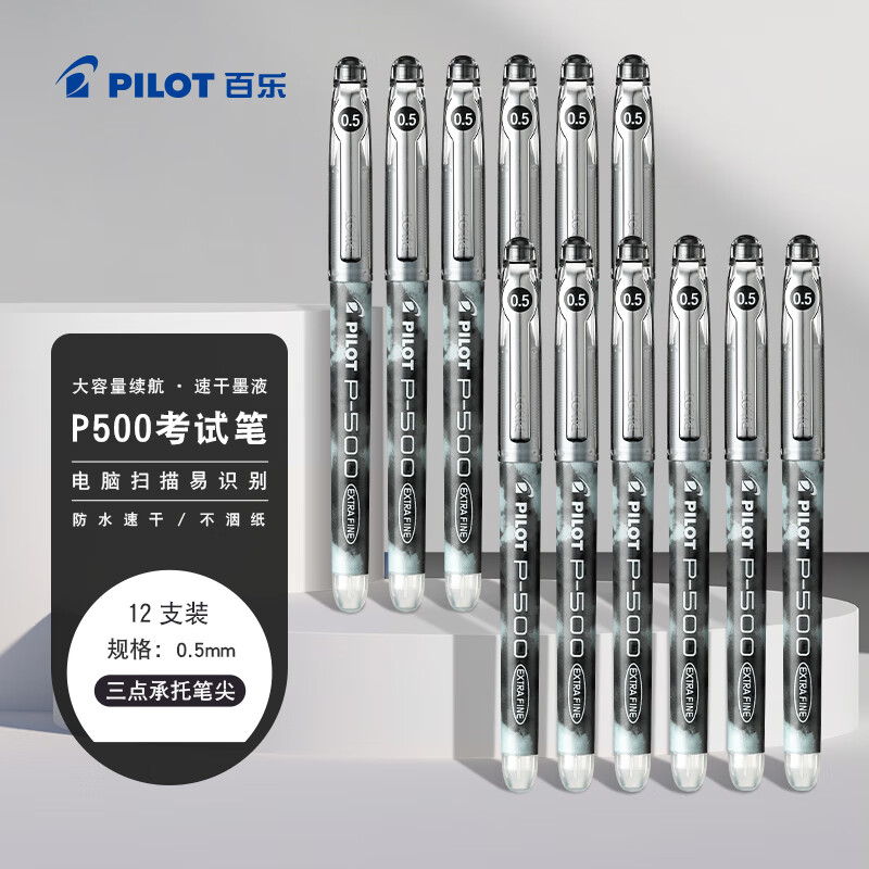 百乐(PILOT)【热门商品】P500黑色中性笔水笔0.5直液式走珠笔签字笔学生刷题笔文具套装办公高颜值考试笔 12支