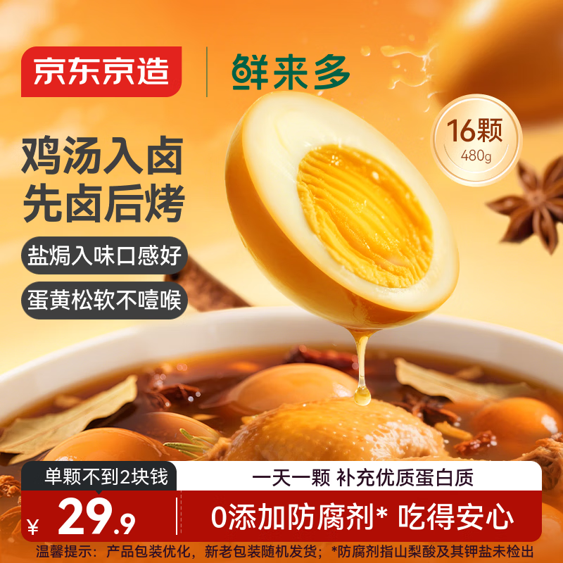 京东京造鲜来多盐焗鸡蛋鸡汤卤蛋16枚无抗原料早餐休闲零食泡面搭档480g