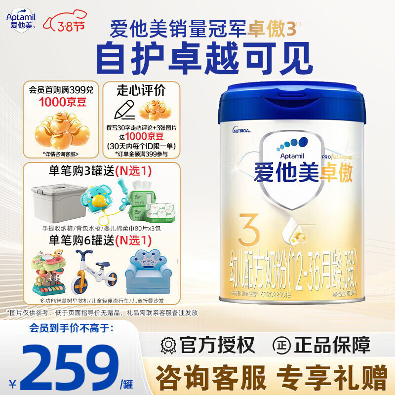 爱他美(Aptamil)卓傲3段幼儿配方奶粉(12—36月) 800g*1罐(0元入会)
