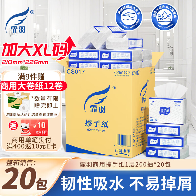 霏羽擦手纸商用1层200抽*20包加厚加大檫手纸厨房用纸抽纸吸水纸CS017
