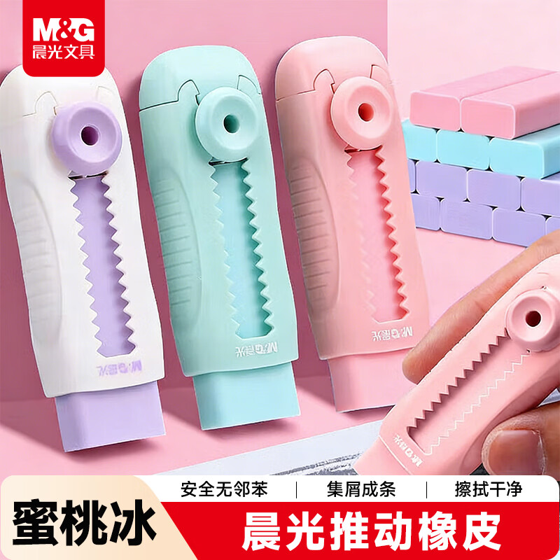 晨光(M&G)文具冰淇淋推拉橡皮擦 不易留痕少屑自锁可换芯铅笔橡皮 推动橡皮1块装蜜桃冰开学文具