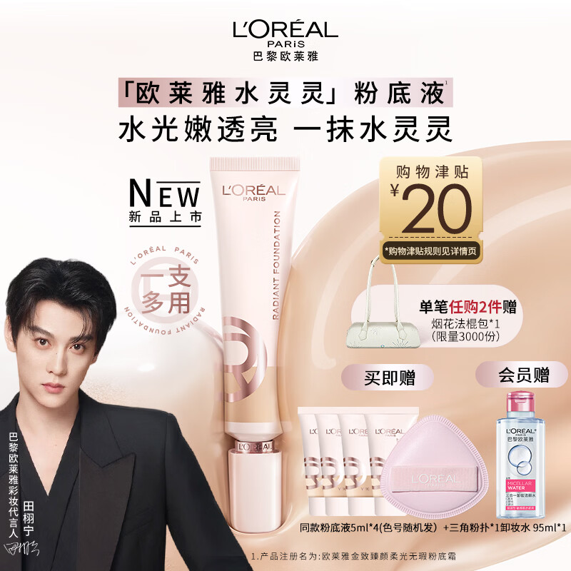 欧莱雅水灵灵粉底液W10防晒水润保湿轻薄不卡粉生日礼物送女友