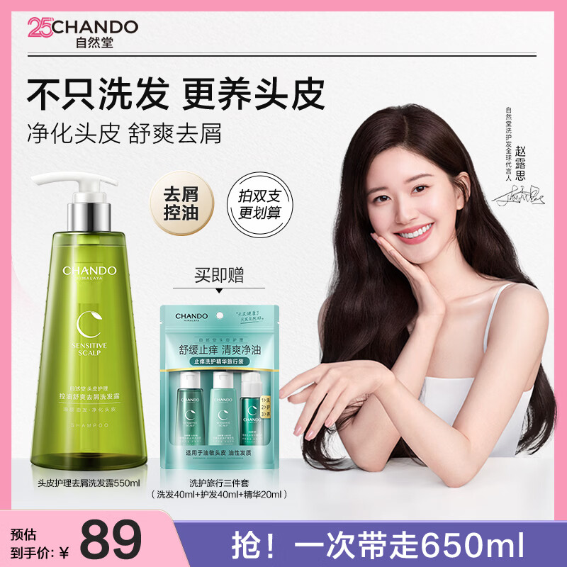 自然堂头皮护理去屑洗发水550ml去屑蓬松控油清爽洗头膏男女赵露思推荐