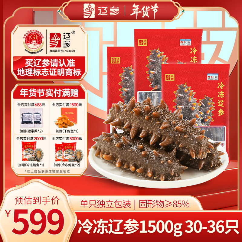 辽参大连冷冻海参3斤 10-12头*3袋 免泡发 非即食 固形物85% 源头直发