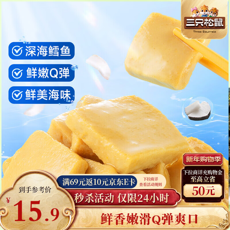 三只松鼠鳕鱼豆腐450g 深海鳕鱼即食鱼豆腐休闲零食儿童海味零食无污染