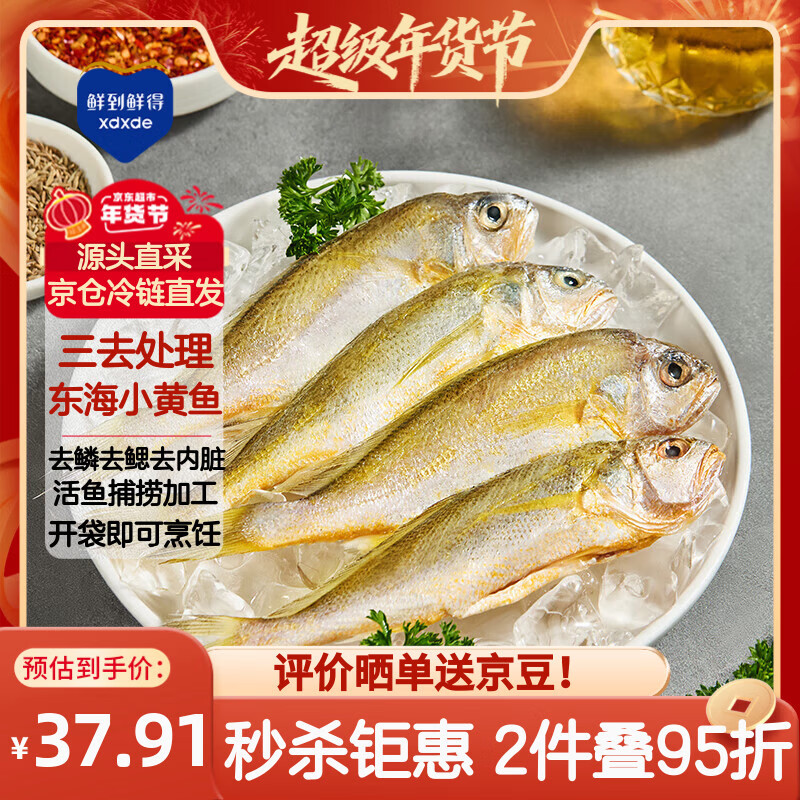 鲜到鲜得 冷冻三去小黄鱼2斤(40-42条) 黄花鱼 深海鱼 生鲜鱼类 海鲜年货