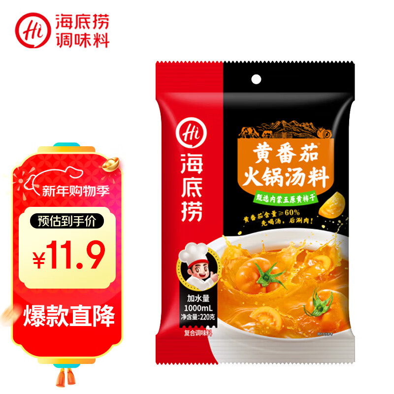 海底捞火锅底料 黄番茄火锅汤料220g 酸甜浓郁 鲜汤味美酸爽浓郁