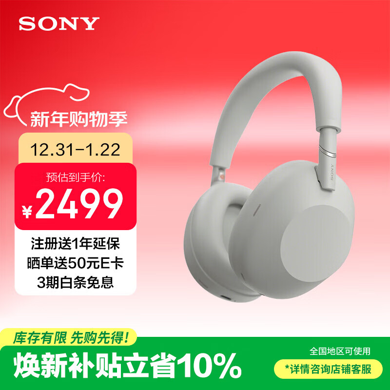 索尼(SONY)WH-1000XM6 头戴式无线耳机 蓝牙降噪耳机1000XM5升级款 网课游戏礼物送男女友学生 铂金银