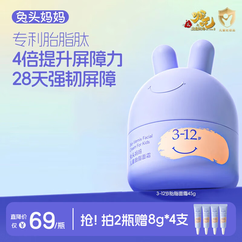 兔头妈妈儿童护肤胎脂屏障面霜 婴儿宝宝保湿霜润肤舒缓滋润面霜3-12岁45g
