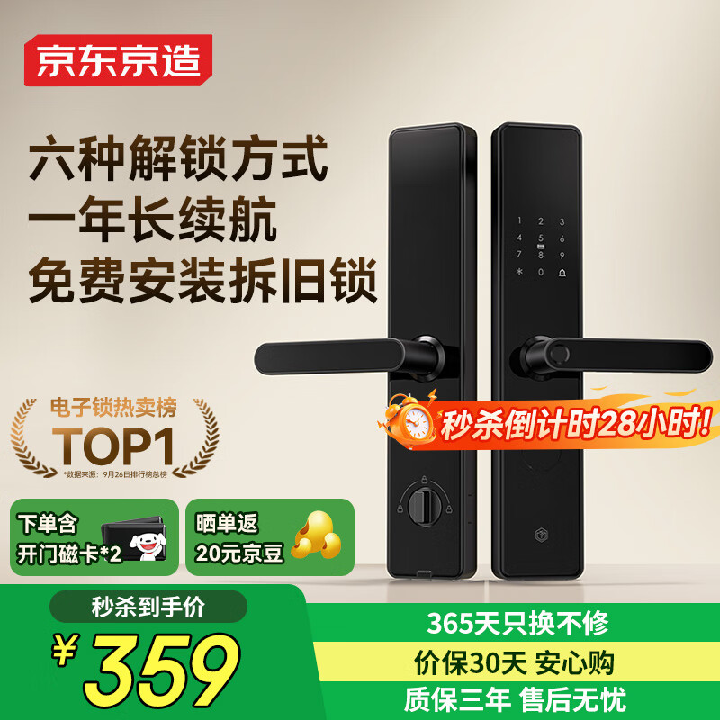 京东京造智能门锁M10 指纹锁密码锁电子锁 C级锁芯 防盗门锁免费安装国补