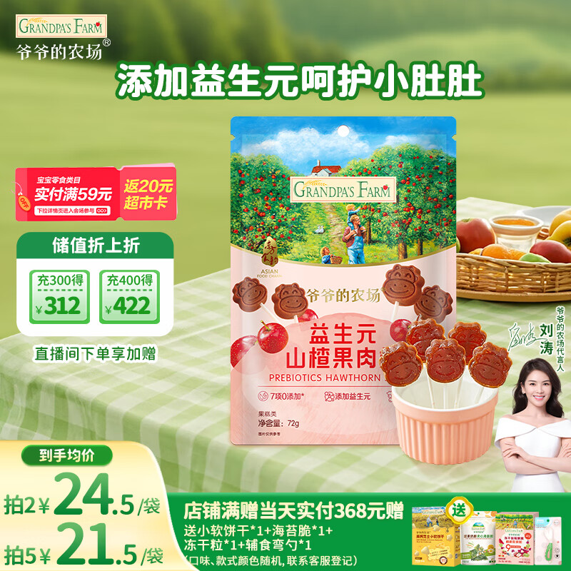 爷爷的农场 益生元山楂棒宝宝儿童零食 享婴儿0-3岁无添加食谱 出行便携72g