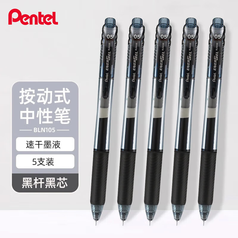 派通(Pentel )【热门商品】BLN105按动黑色中性笔高颜值0.5mm签字笔商务学生速干水笔水性笔文具 黑色5支装