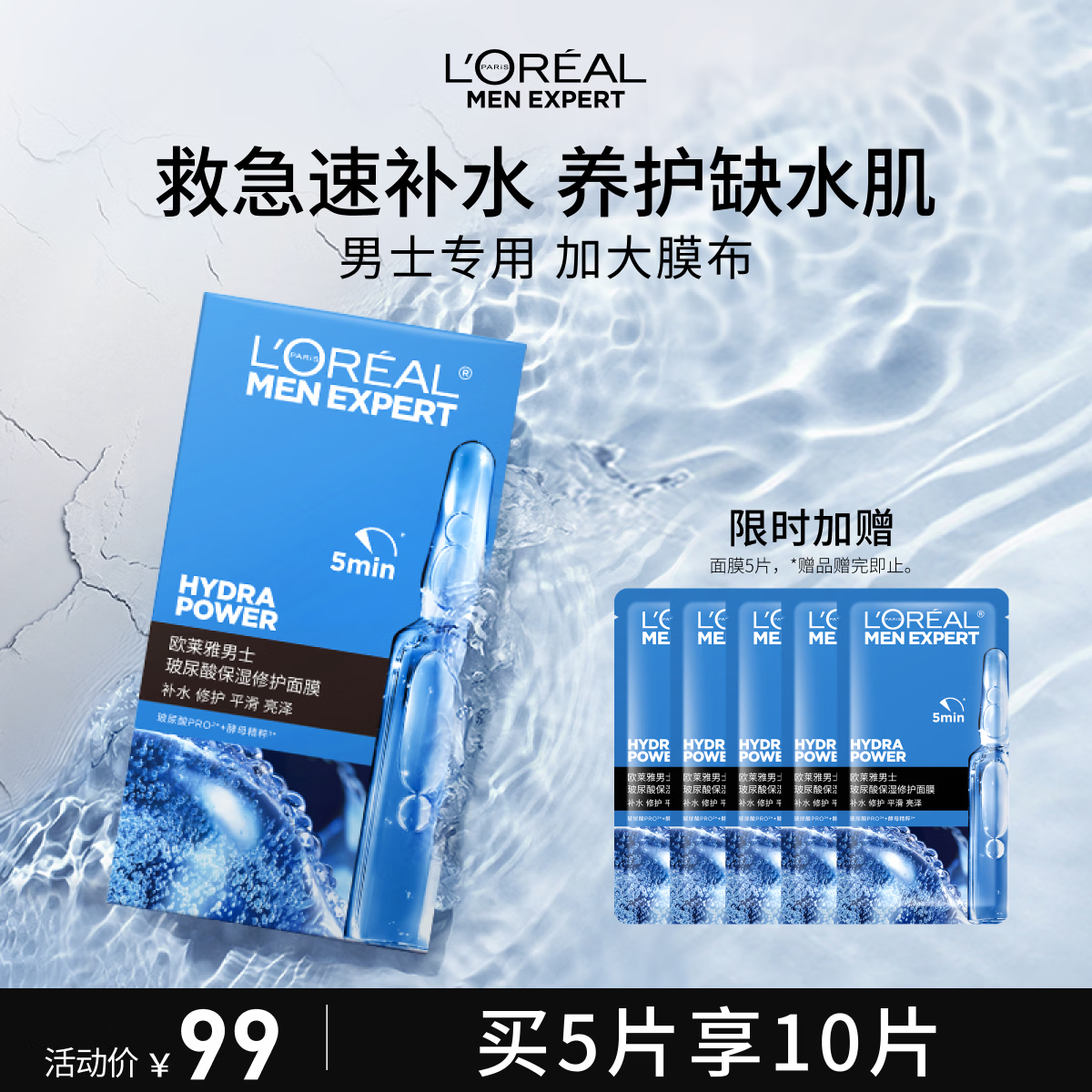 欧莱雅男士玻尿酸保湿面膜5片补水锁水强韧屏障男士护肤品礼物