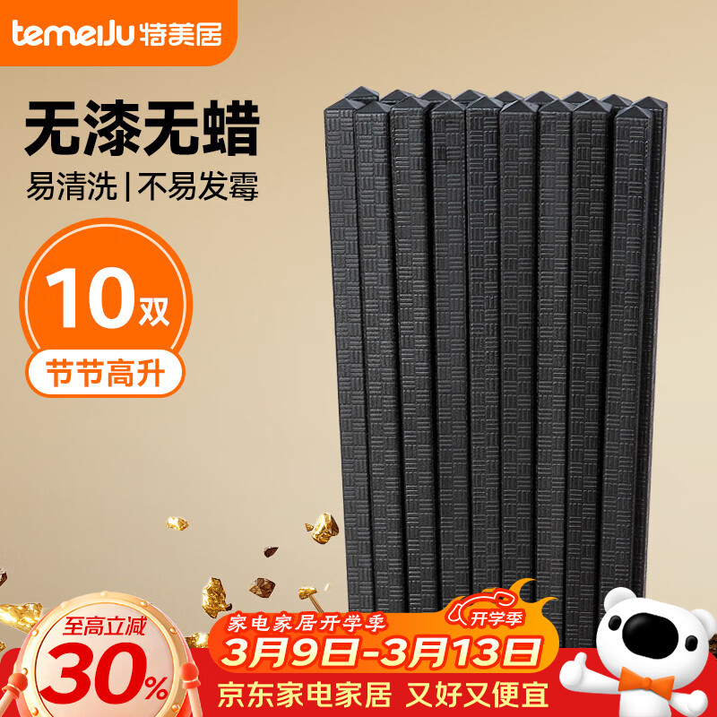 特美居消毒机专用 耐高温酒店餐厅筷 无漆无蜡家用防滑防霉24cm合金筷子