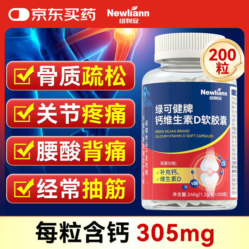 Newliann钙维生素d 钙D软胶囊 成人中老年人液体钙片 补钙 1.2g/粒*200粒