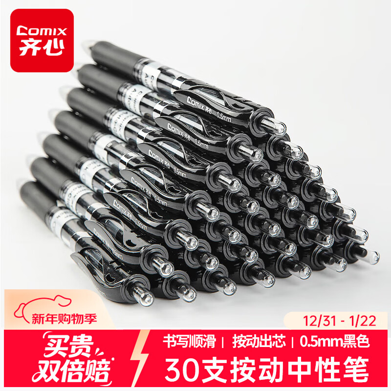 齐心(Comix)【热门商品】30支装顺滑中性笔签字笔按动笔按压水笔 0.5mm子弹头办公用品 黑色 EB15