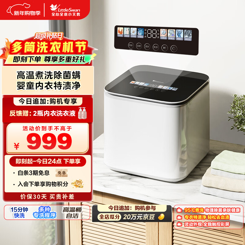 小天鹅(LittleSwan)内衣洗衣机小型全自动家用 迷你 婴儿懒人 高温煮洗 除菌螨 TNB10-03WE 京东自营