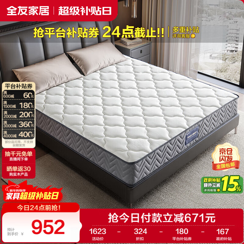 全友家居 进口天然乳胶床垫1.8x2米独立袋装弹簧环保卧室床垫子