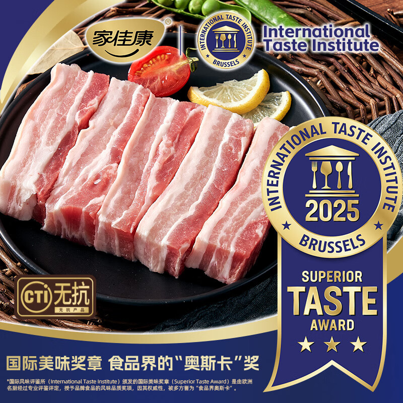 家佳康 无抗亚麻籽猪五花肉450g 冷冻腩肉条五花肉条 烤肉原料 生鲜