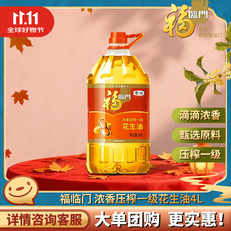 福临门 食用油 浓香压榨一级花生油 中粮出品 花生油 4L*1桶