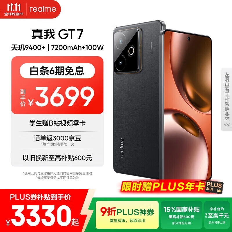 realme【国家补贴】真我GT7 天玑9400+ 轻薄大电池快充长续航 超声波3D指纹 电竞AI游戏5G手机 16+1T黑