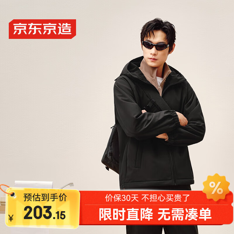 京东京造外套男软壳衣夹克男户外登山防泼水加绒保暖 黑色 XL