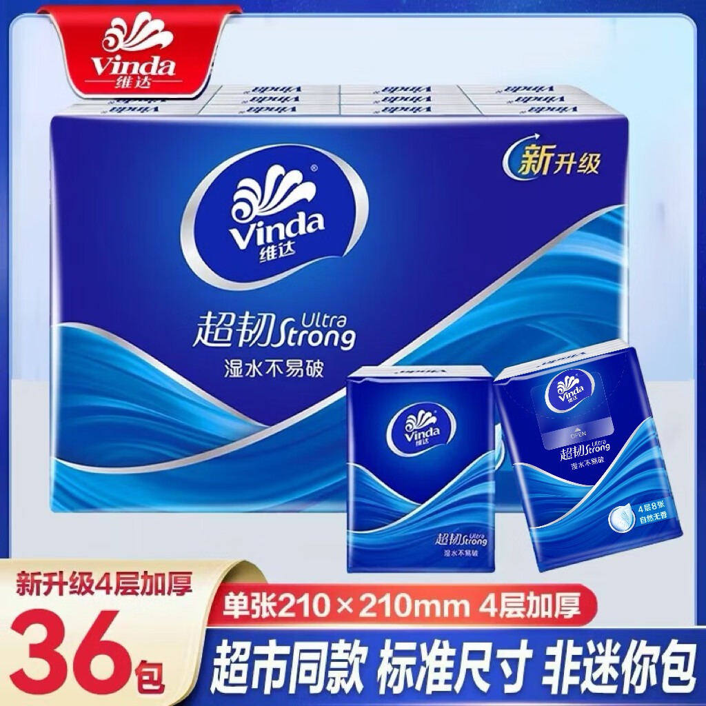 维达超韧手帕纸4层36包经典无香卫生纸小包纸手拍学生便携随身装纸抽 4层 8张*36包 【热卖推荐装】