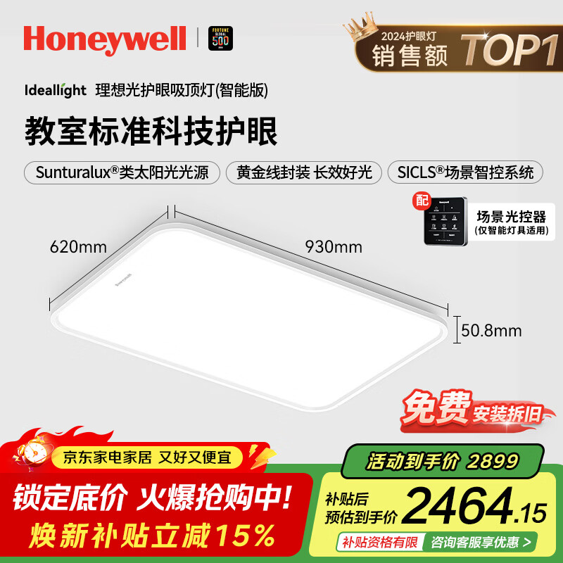 霍尼韦尔(Honeywell)护眼吸顶灯客厅大灯卧室灯餐厅LED全光谱护眼灯02LFPro【包安装】
