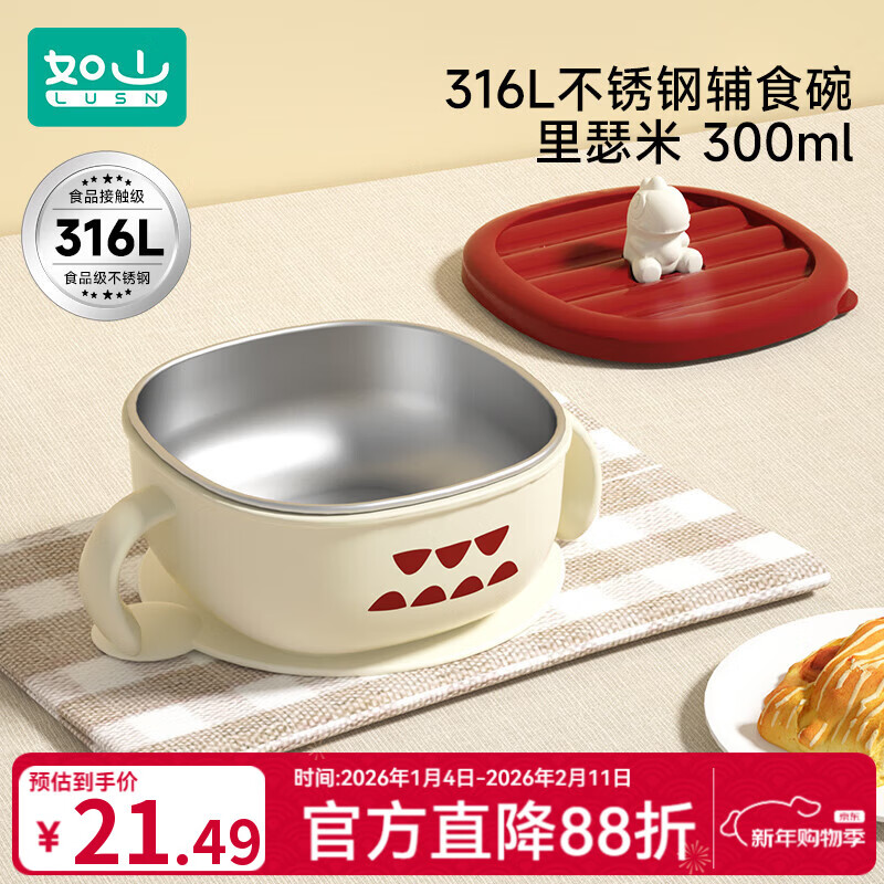 如山宝宝辅食碗婴儿专用喝汤碗儿童吃饭碗外出餐具316L不锈钢碗