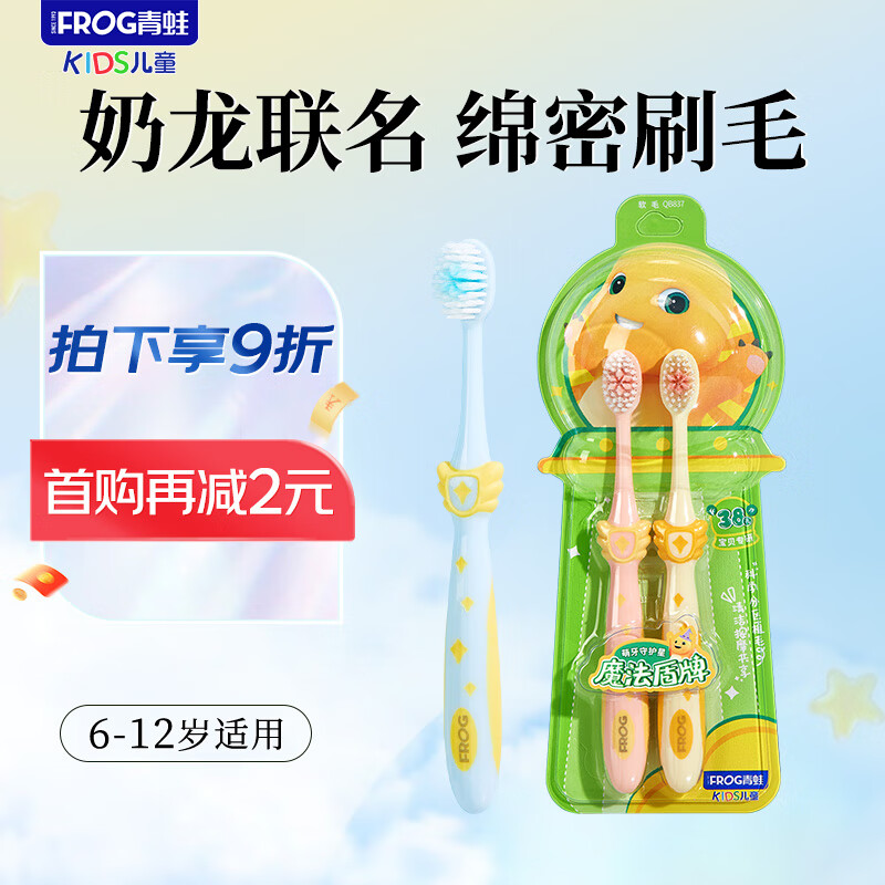 青蛙奶龙联名儿童牙刷柔护软毛刷丝呵护牙龈牙刷2支