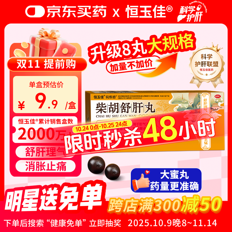 恒玉佳 柴胡舒肝丸散10g*8丸 大蜜丸舒肝理气消胀止痛养肝护肝清肝排毒 护肝片养肝护肝专用药柴胡疏肝丸非散中成药 健脾祛湿疏肝解郁 科学保肝护肝片剂