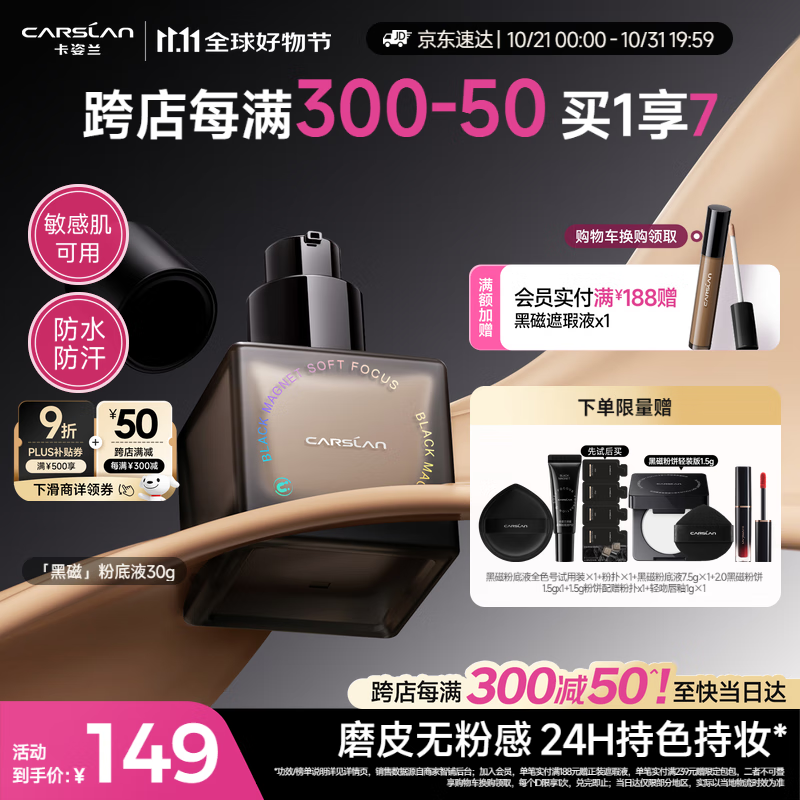 卡姿兰(Carslan)黑磁粉底液遮瑕控油持久防汗不脱妆混合皮持妆P01 30g 生日礼物女