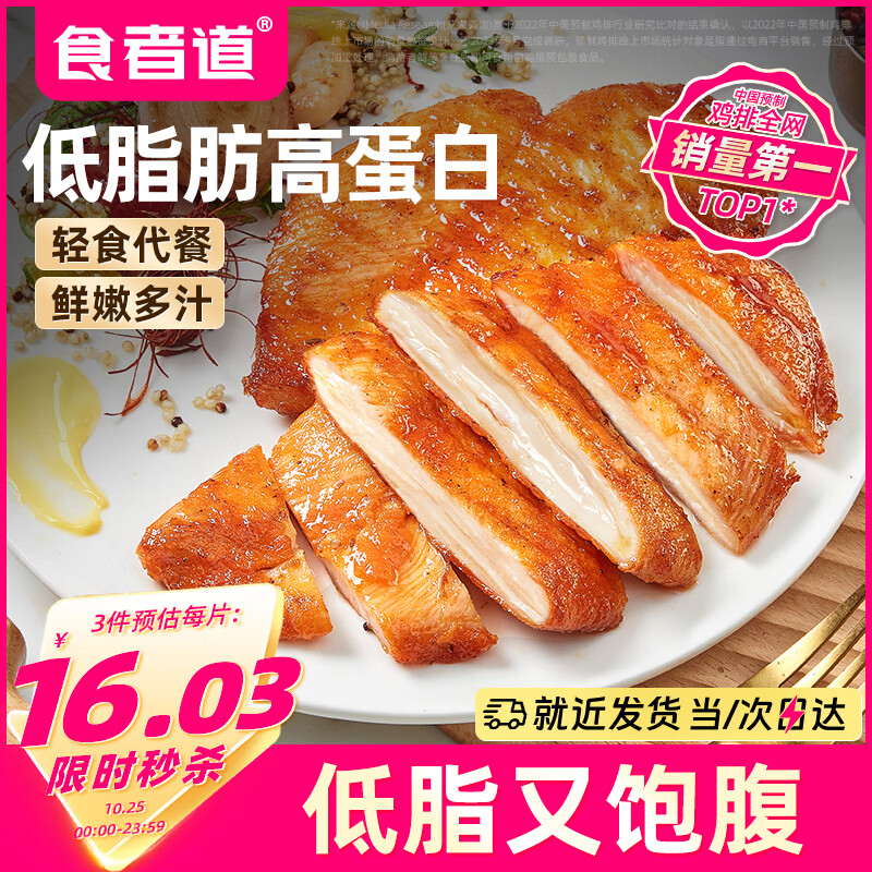 食者道鸡排 奥尔良味鸡胸肉100g*5 轻食低脂高蛋白健身代餐便捷早餐鸡肉